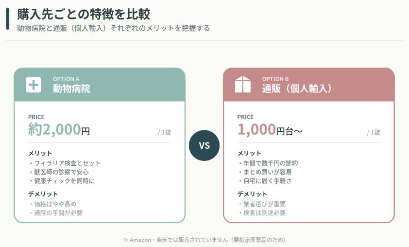 ネクスガードスペクトラは要指示医薬品のため、日本国内では動物病院での処方が基本となります。一方で、個人輸入代行サービスを利用した通販も広く行われており、価格面では大きな差が出るのが実情です。