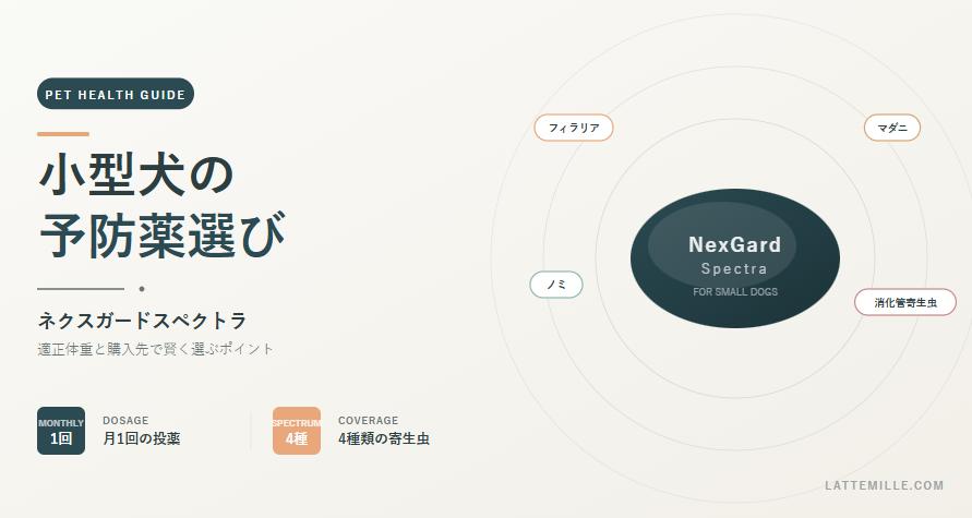 この記事では、小型犬用ネクスガードスペクトラの特徴から適正体重の見極め方、投与のコツ、購入先による価格の違いまで、飼い主が本当に知りたい情報を整理してお届けします。